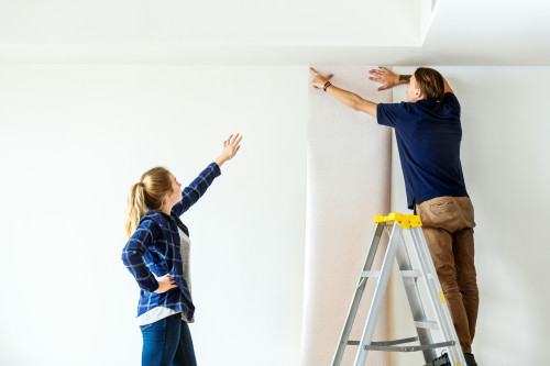 - Rul papiret ud i baner – start langs væggen og arbejd dig ud mod midten af rummet.